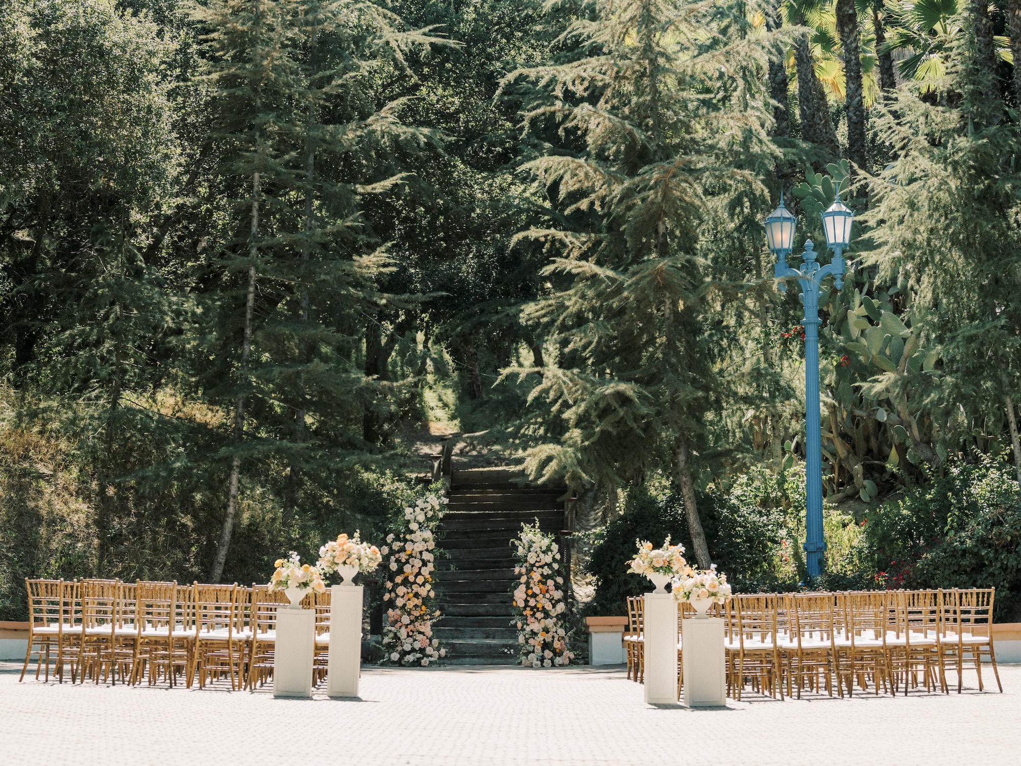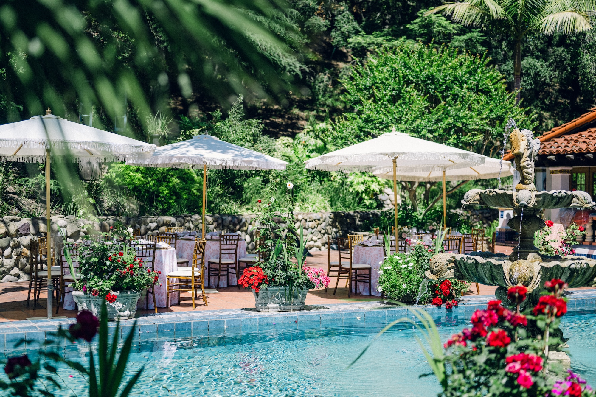 Enjoy outdoor ceremonies and celebrations beneath beautiful oak and sycamore trees in El Teatro or around the gorgeous wooden staircase and lush forest-like backdrop at La Terraza. Dance and dine indoors in the Grand Salon, and mix and mingle al fresco next to the cascading fountain on the terracotta tile terrace. This one-of-a-kind setting makes Rancho Las Lomas one of Southern California’s most spectacular private event venues.